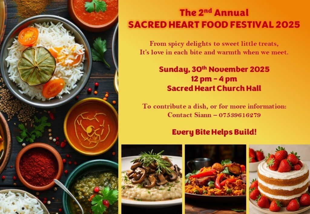 The 2nd Annual Sacred Heart Food Festival will be held on *Sunday, 30th November 2025*, right after morning Mass. Following last year’s success, the festival will once again celebrate the parish’s diverse community through food and fun.